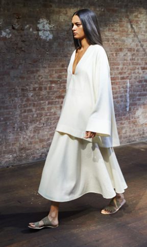 Ashley y Mary-Kate Olsen fueron desde hace tiempo precursoras del vestido túnica, toques góticos, vintage y boho chic quedan en pequeñas pinceladas en sus diseños de lujo, hechos con materiales de calidad, que tienden a la gabardina, al vestido lady, y a la superposición de capas, femenino y a veces a combinaciones que viran hacia lo masculino y ambiguo a la vez con un guiño. (Para nuestro gusto, el mayor pero de estas prendas es que desde luego se lucen más en modelos menos delgadas)