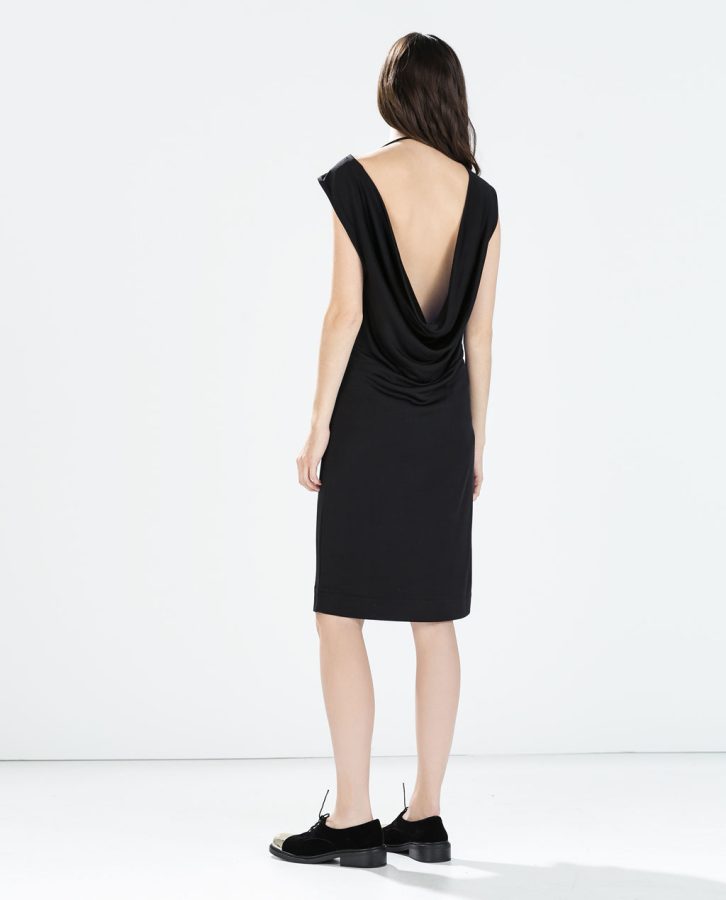 En Zara vemos muchas de estas tendencias también a la venta, las lentejuelas, las transparencias y los flecos en vestidos de líneas simples son su mejor baza, pero os vamos a proponer que éches un ojo a dos ideas más para considerar: vestidos con la espalda al aire y la vuelta del terciopelo. Respecto a lo primero os permite un juego seductor, un guiño que además o permite ir más tapadas en cuanto al resto del conjunto y se puede combinar con el resto de propuestas. Nosotros hemos elegido dos que aúnan por un lado un color navideño y un look infantil pícaro y por otro la discrección y la elegancia sin perder modernidad.